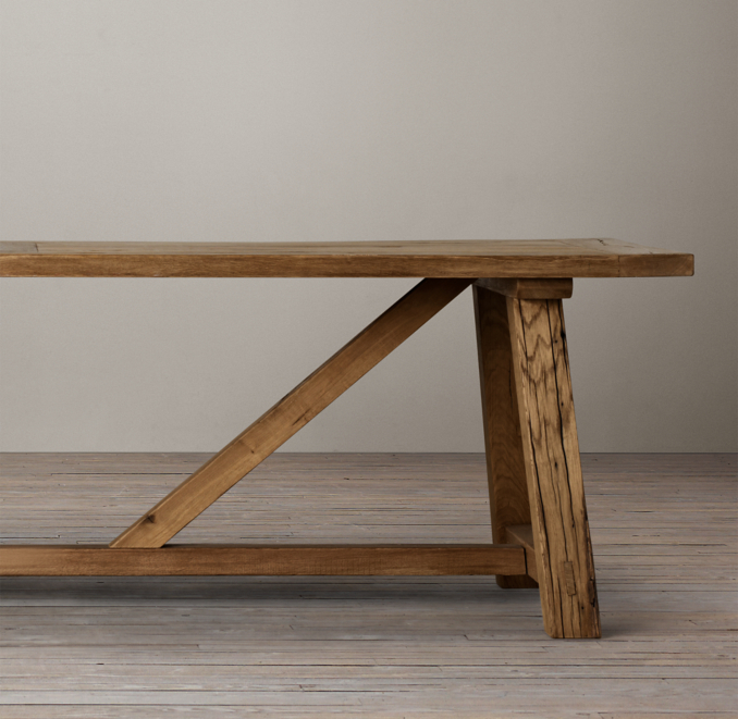 The hart rectangular dining table has a welcoming farmhouse style. Made from reclaimed white oak •. The square corners and the angular venetian trestle base are subtle details that lean toward elegance while the reclaimed old pine top help to keep the feel more casual. 4.0 out of 5 stars 40. Metal dining table legs (set of 2). Located in rio vista, ca. And with room to seat six, this sustainable, solid wood frame means becky and bobby won't have to stress about getting another table anytime soon. + more sizes & finishes. Century old wood is much harder than new wood and therefore is an excellent choice for growing families. Racetrack trestle table made from reclaimed pine. Dining table, trestle table, reclaimed wood, wood table, handmade $1,495.00+ loading in stock. The table's trestle design was inspired by the american arts and crafts movement. Salvaged wood trestle round dining table.